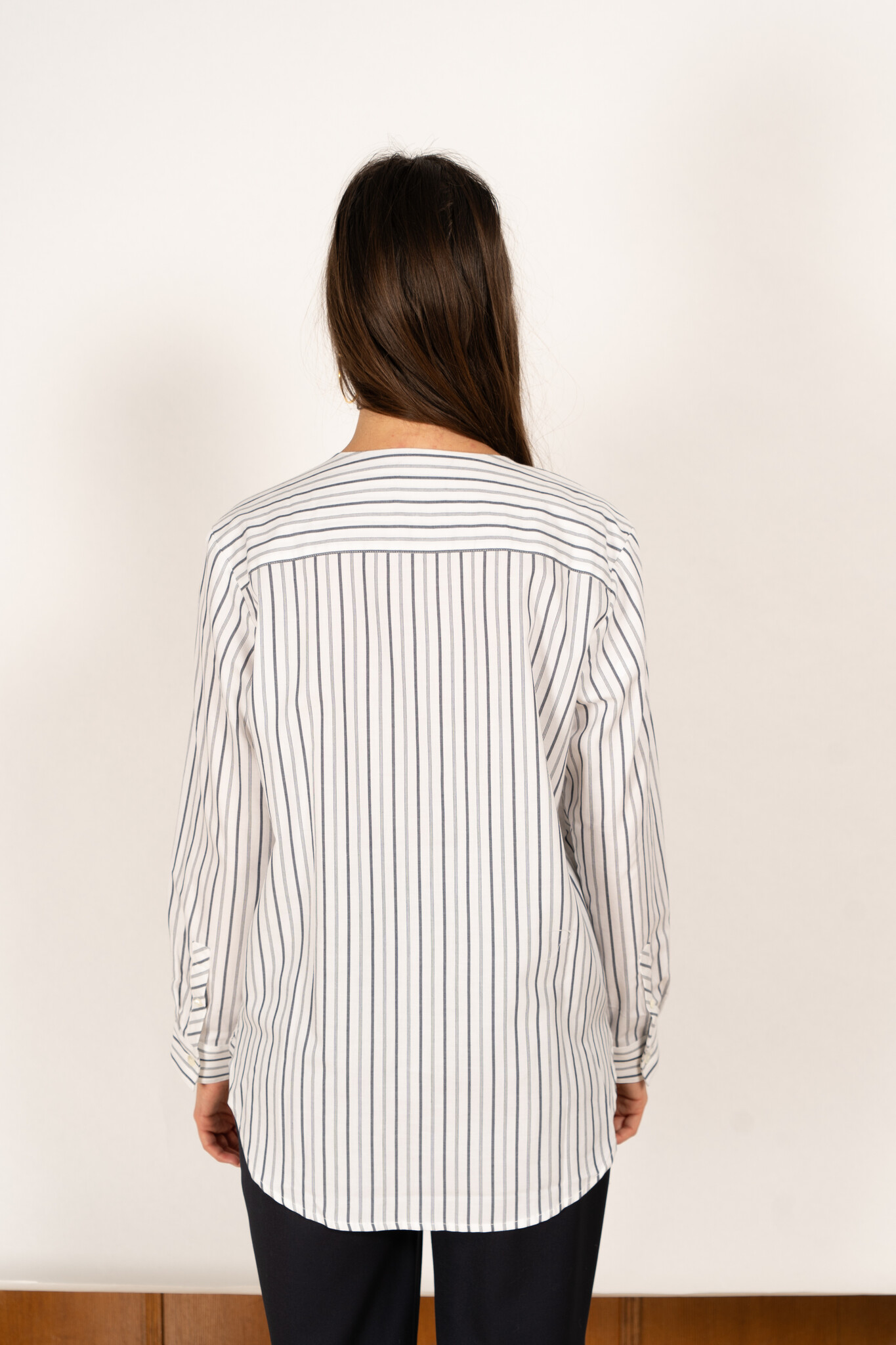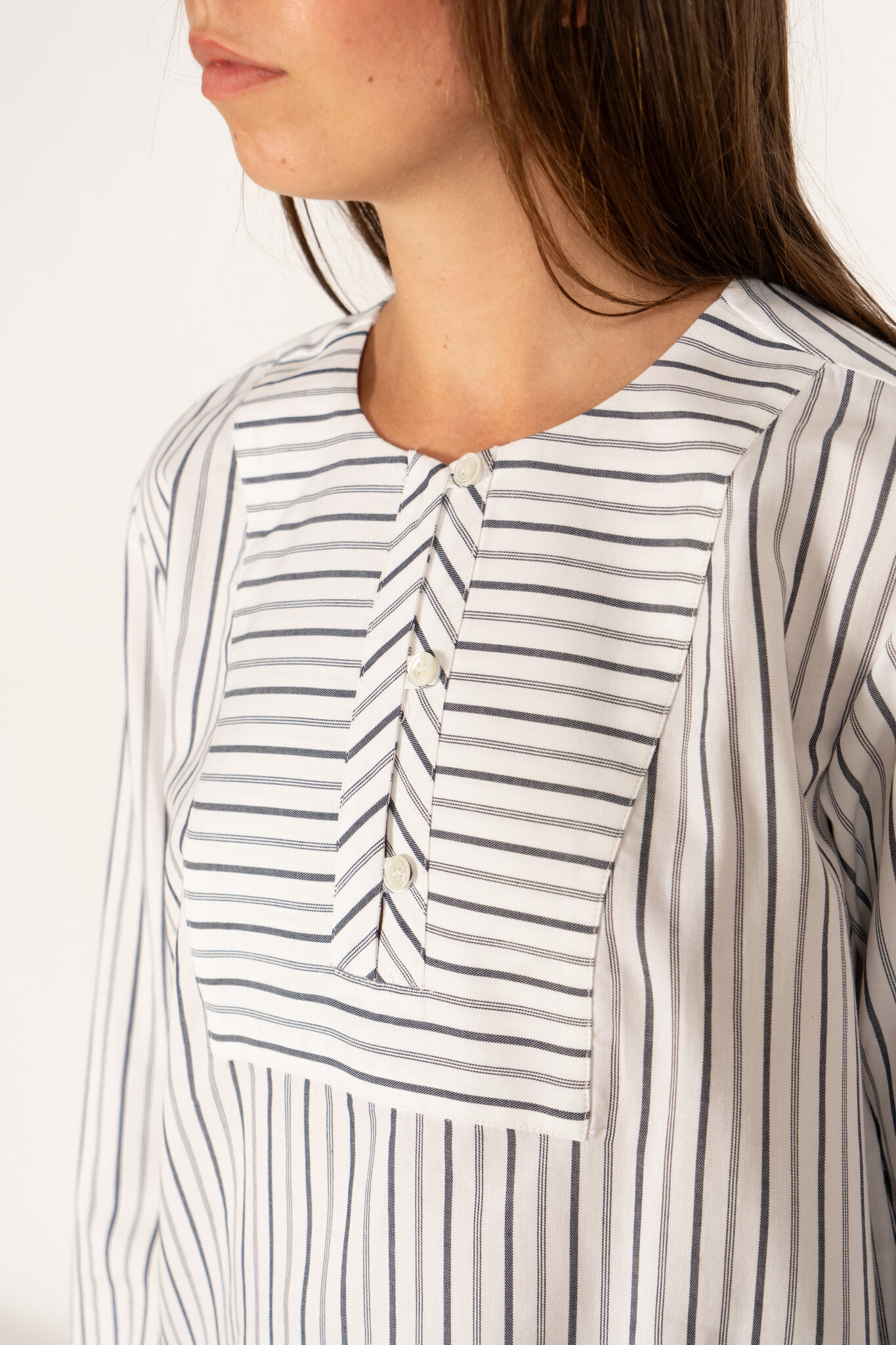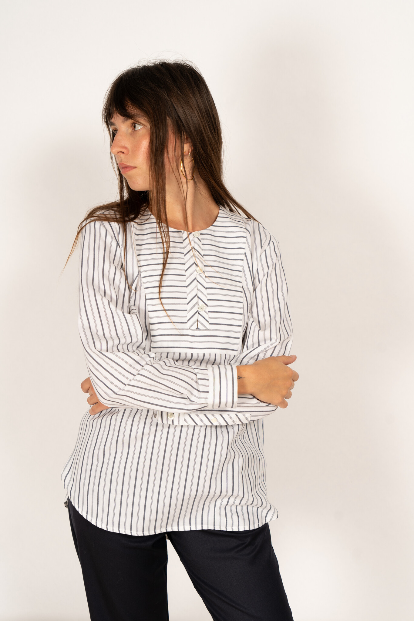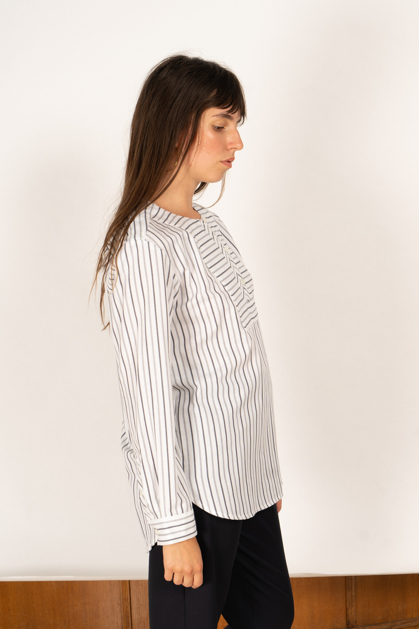 The Amy blouse by A.P.C. is made of a cotton wool blend with grey stripes.