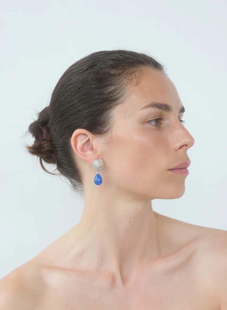 Breton sky Earrings, a pair of recycled sterling silver earrings with Sky Blue pearls by Corali.