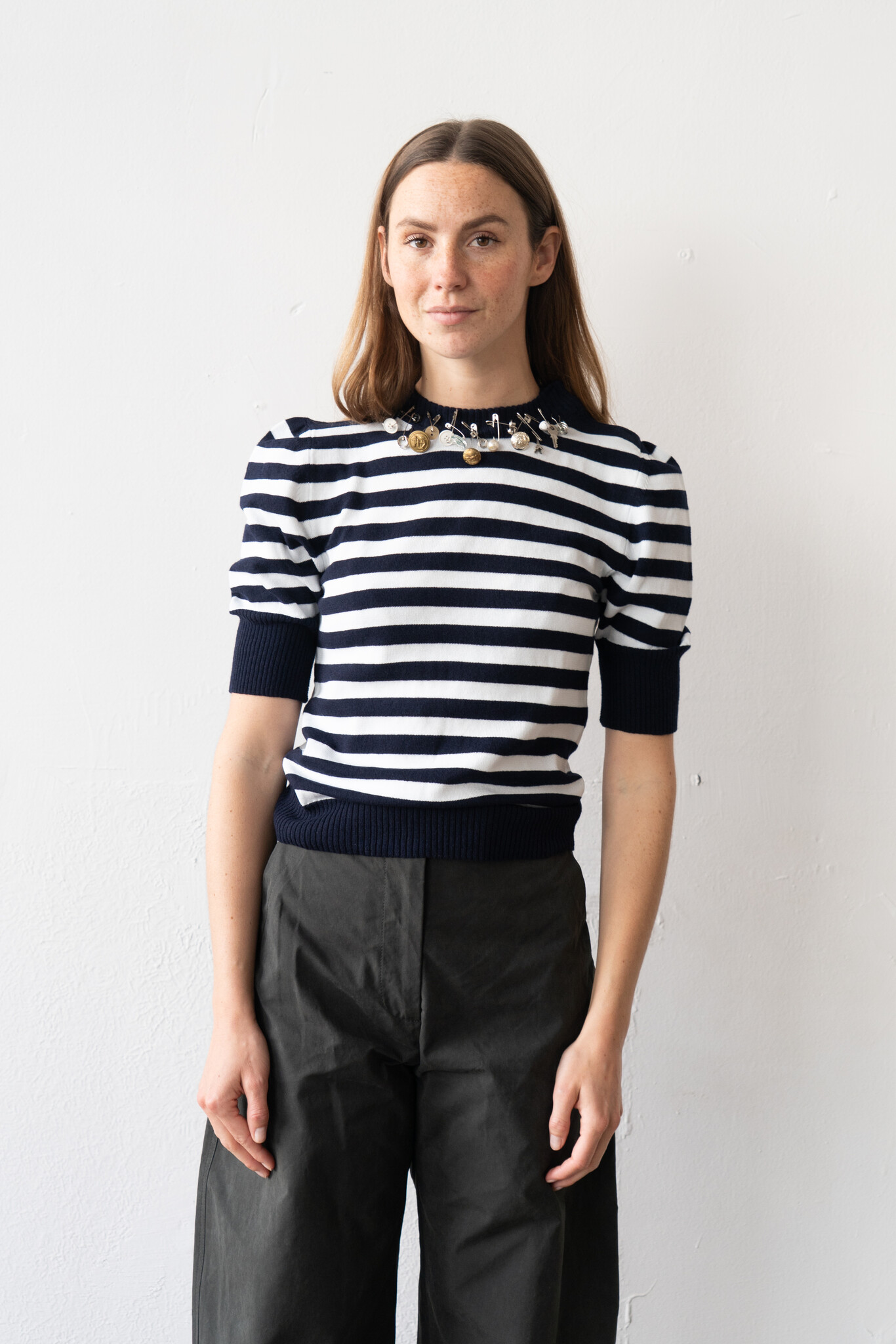 Carli short sleeve sweater in Navy / White by LA FETICHE