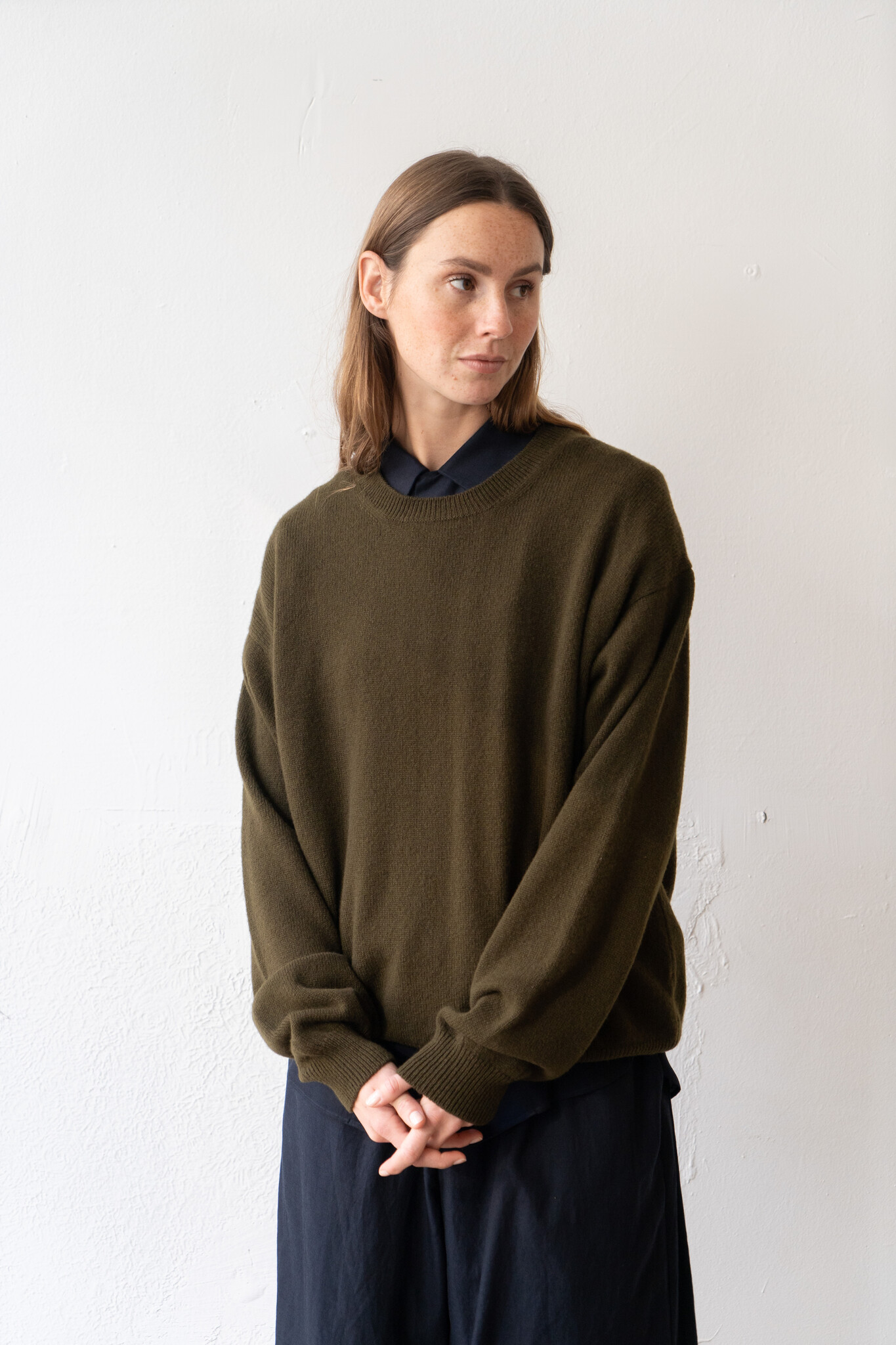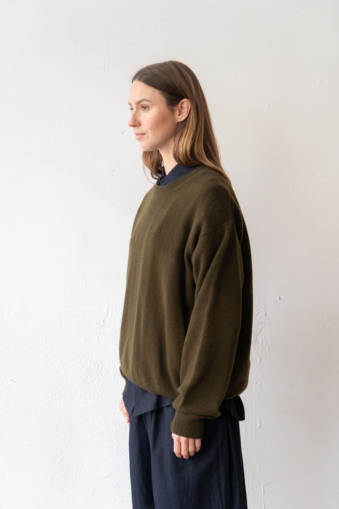 The &Daughter Innes Crewneck Knit, crafted from softest, Scottish-spun Geelong lambswool, designed as an effortless companion piece for everyday. With a gently slouchy silhouette which drapes with flattering ease.