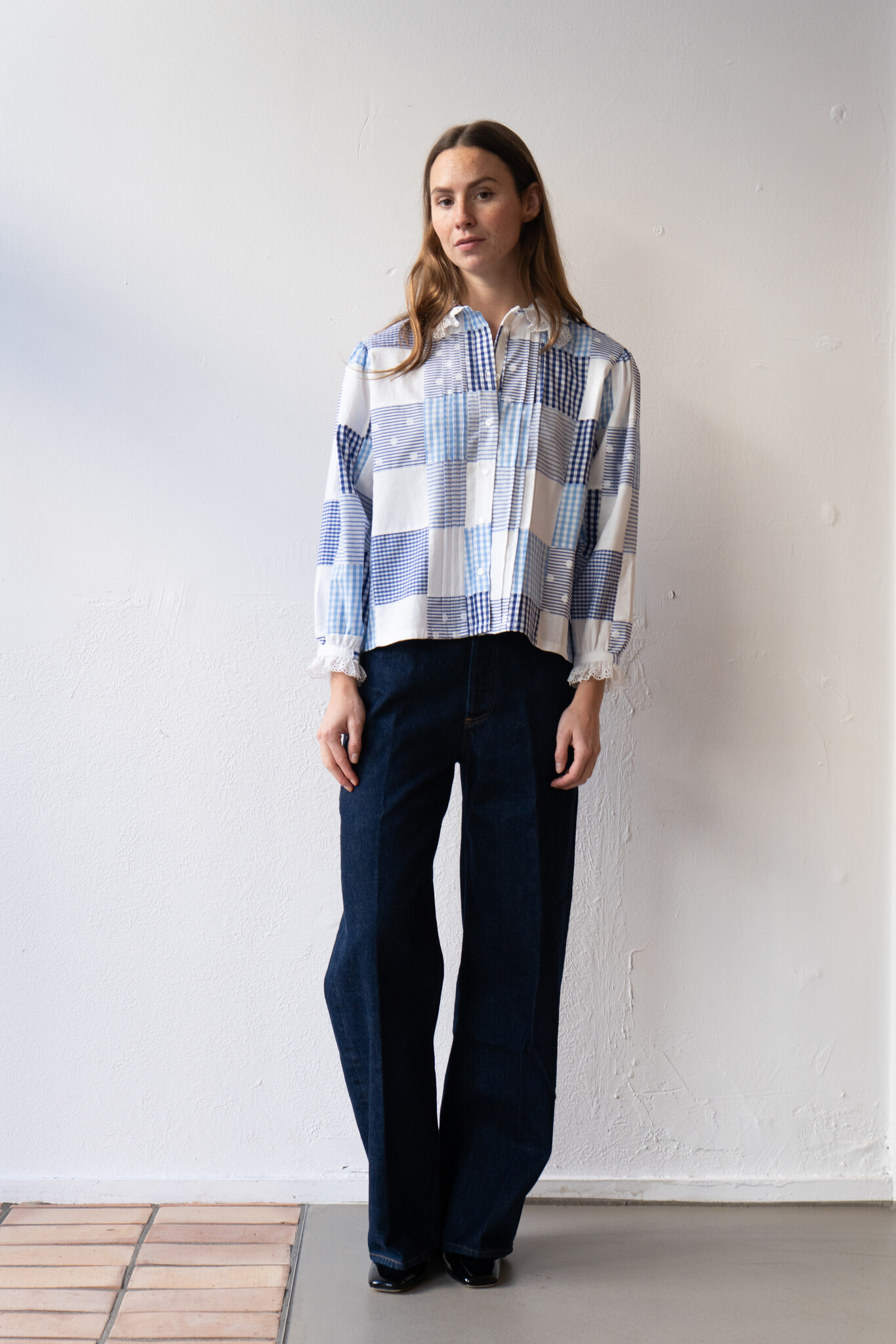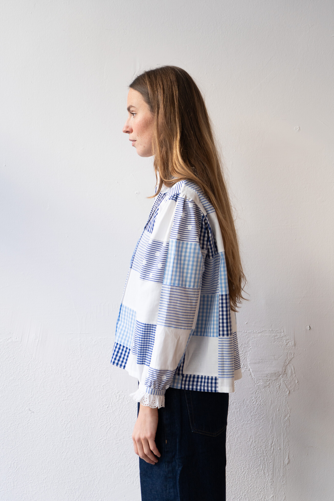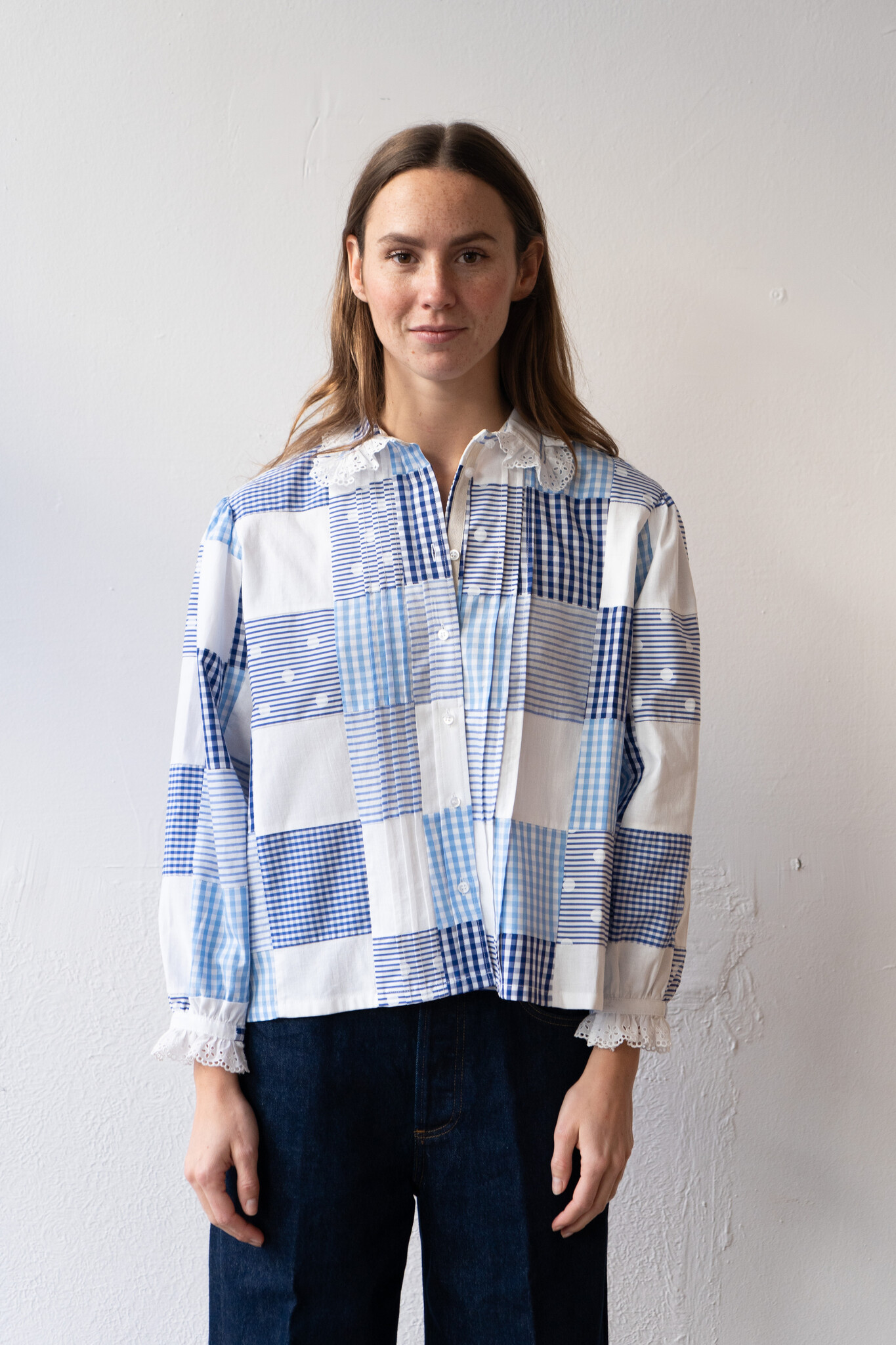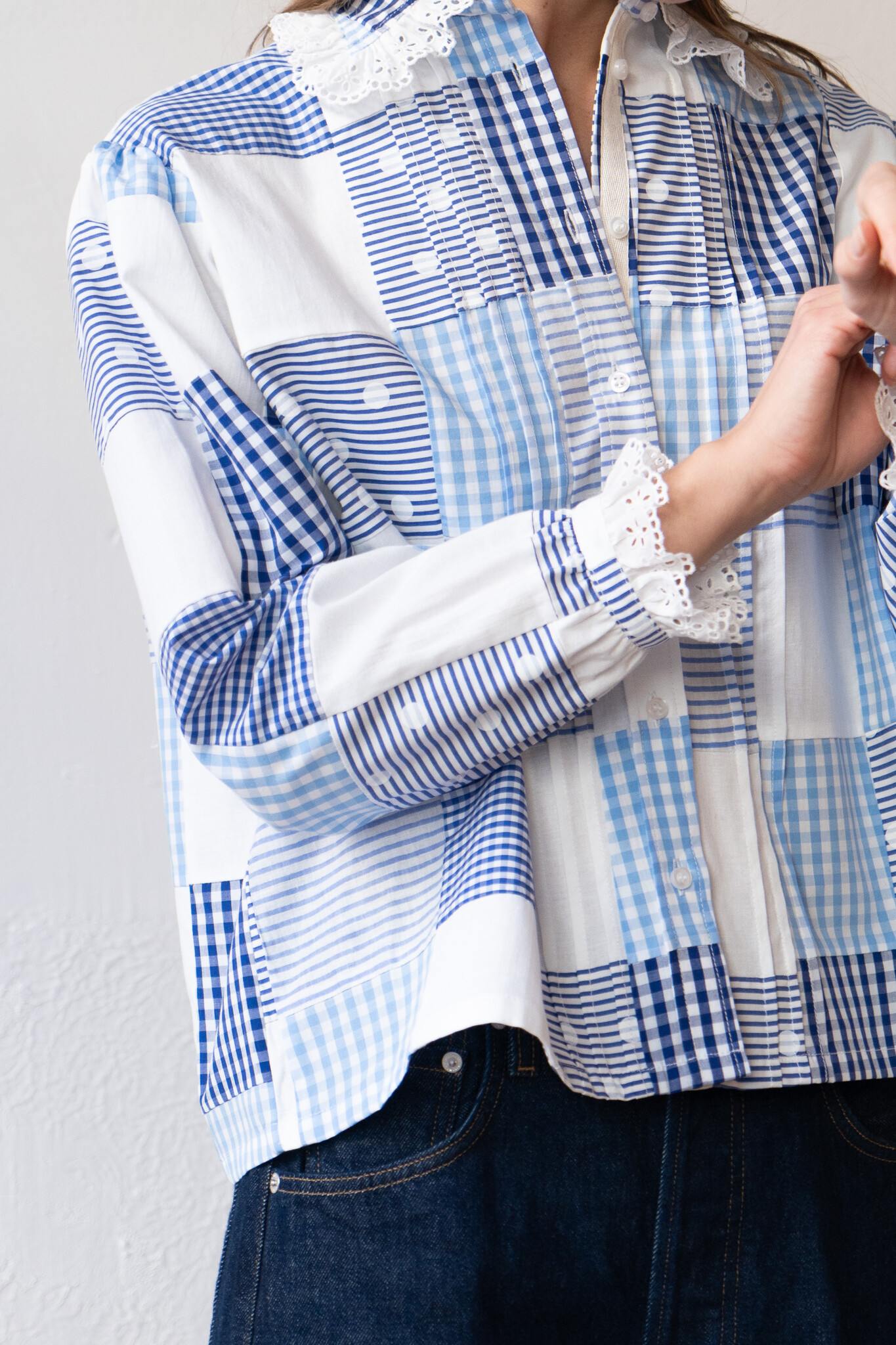 JANE PATCHWORK COTTON BLOUSE with frill collar and cuff, front pintuck details by La Fetiche.