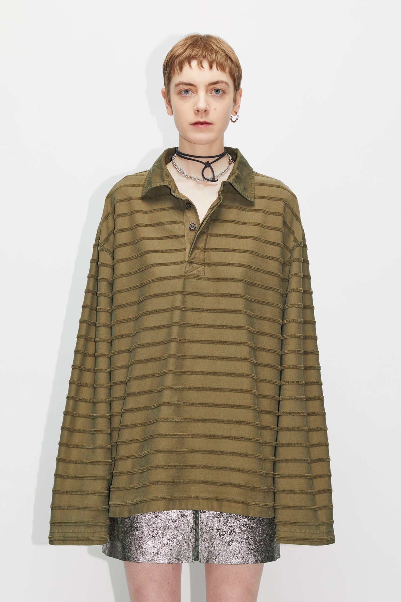 Lamp Sweatshirt by Hope is crafted from 100% organic cotton with an all-over striped textured pattern. Complete with button-up closure. Cut to a relaxed fit.