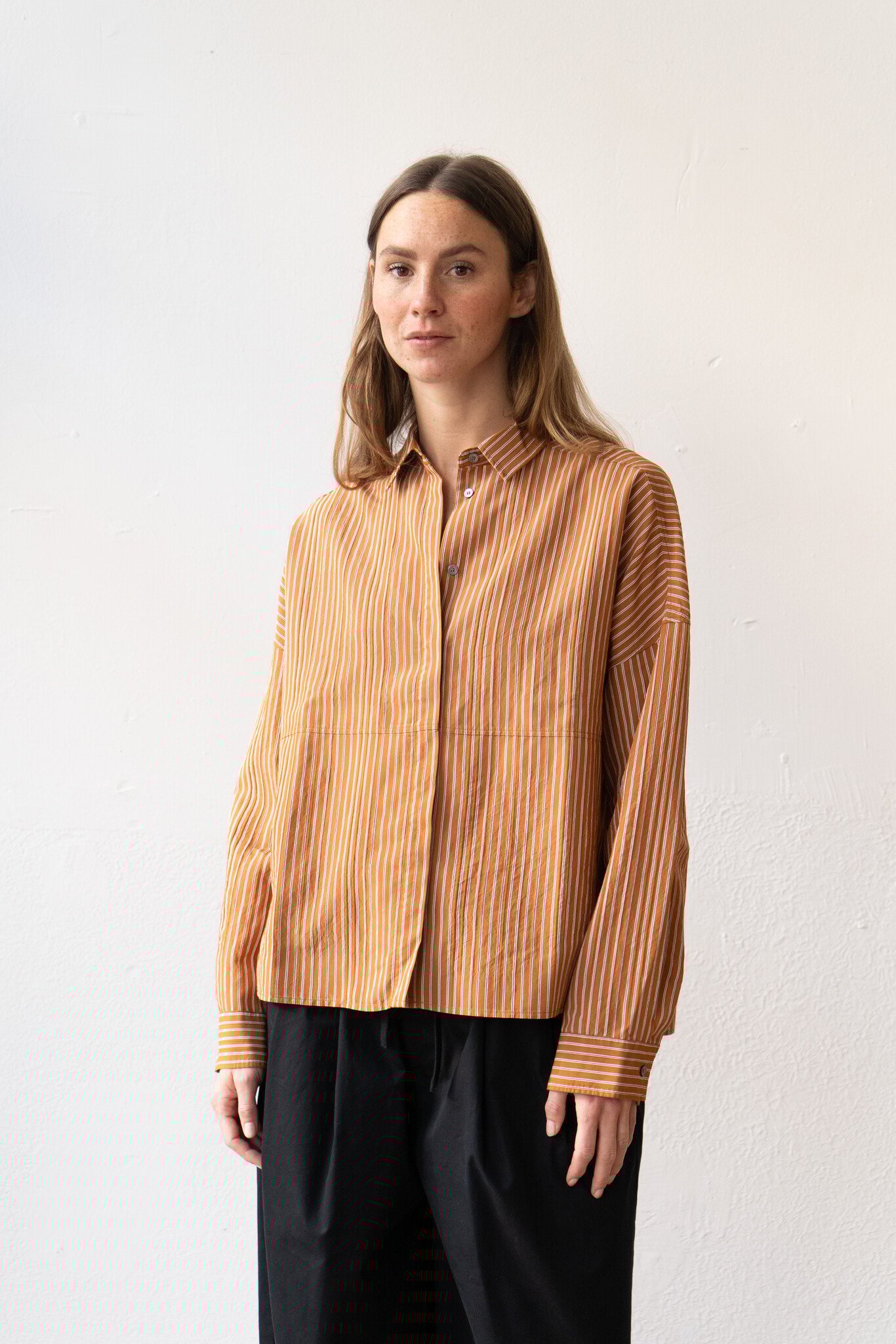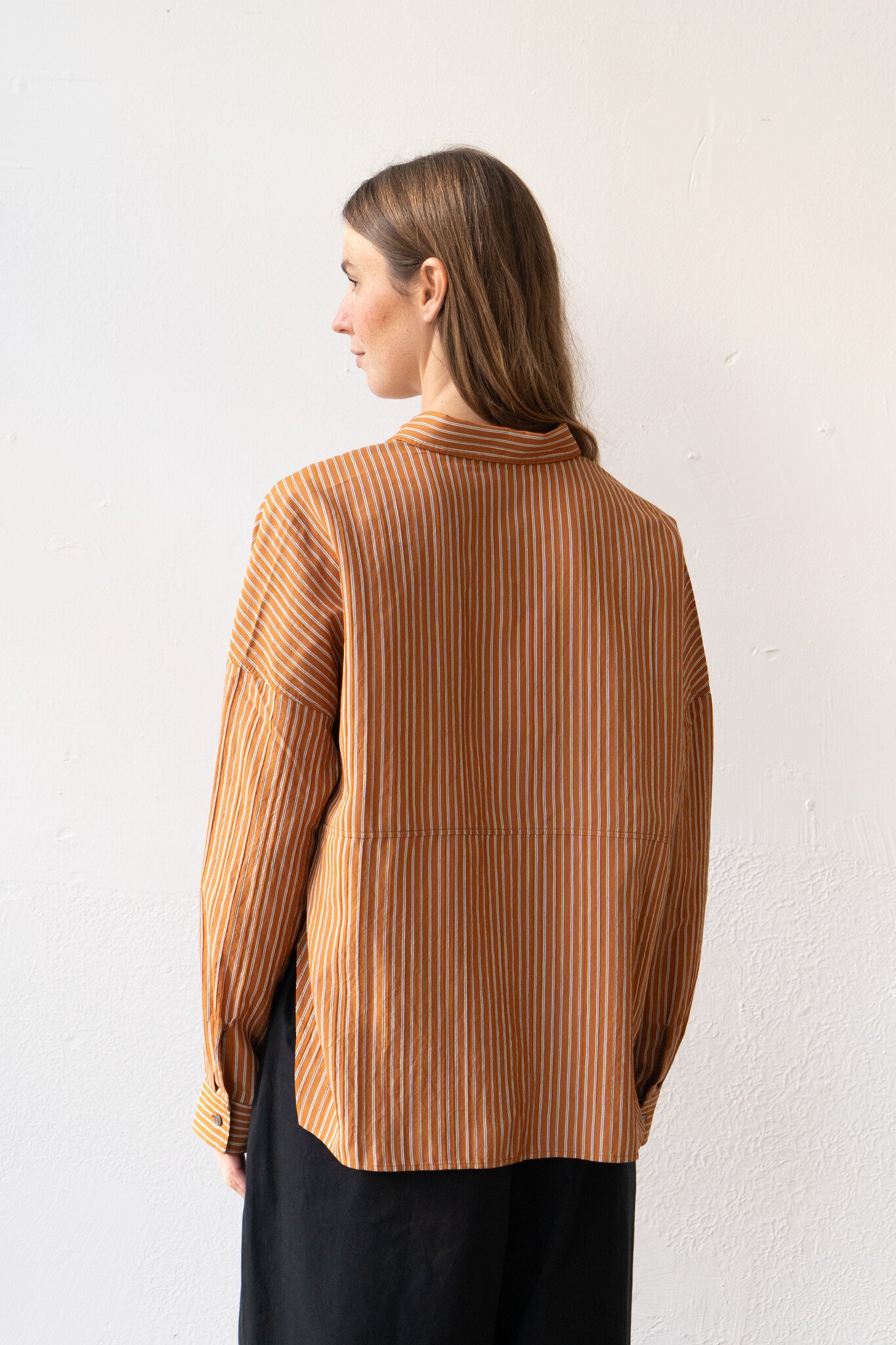 - Loose Fit Burnt Orange Stripe Shirt.