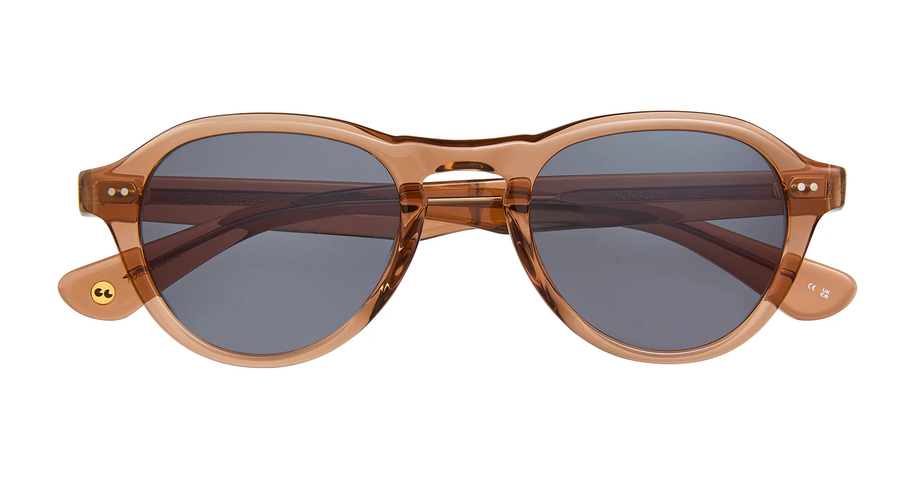 McNally Sun by Garrett Leight is a modern brow-line aviator with soft curves and a subtle lift. Detailed with polished vertical pins and GLCO’s classic dual-plated rivet hinges and core wire. 100% UV protection.