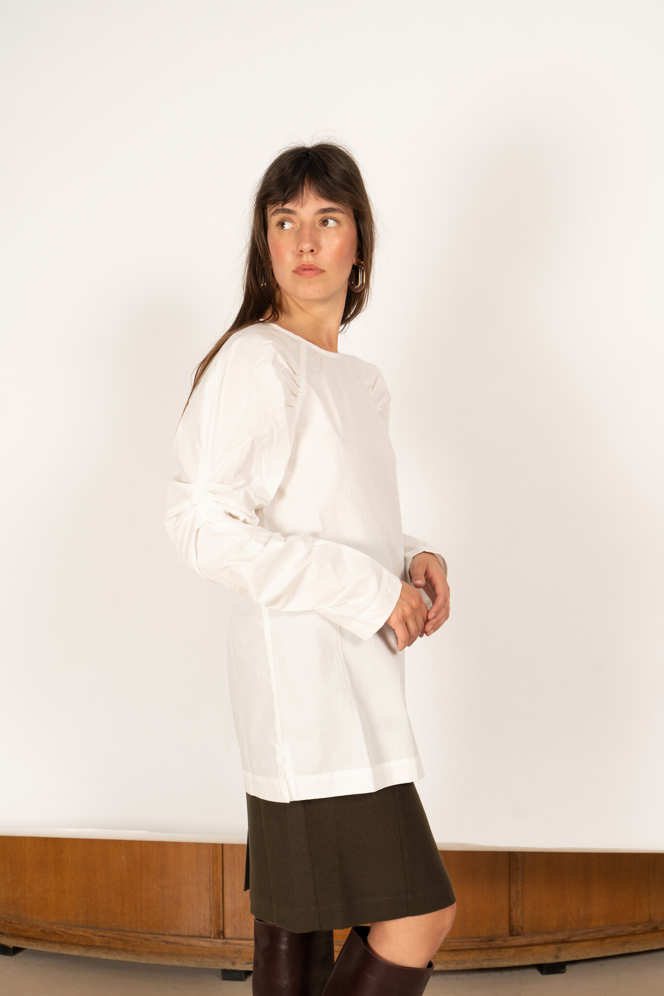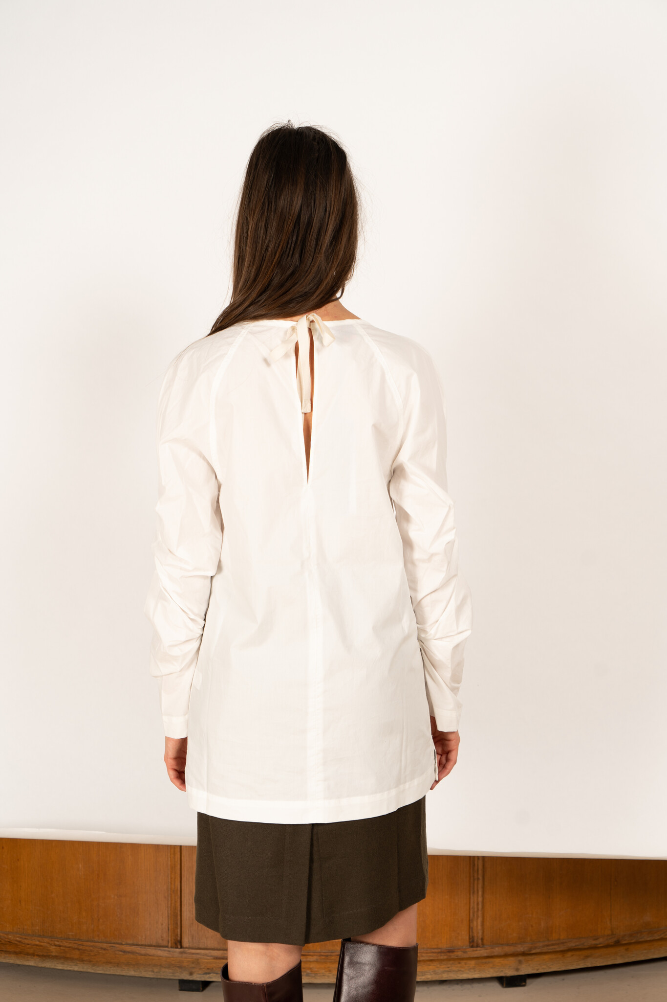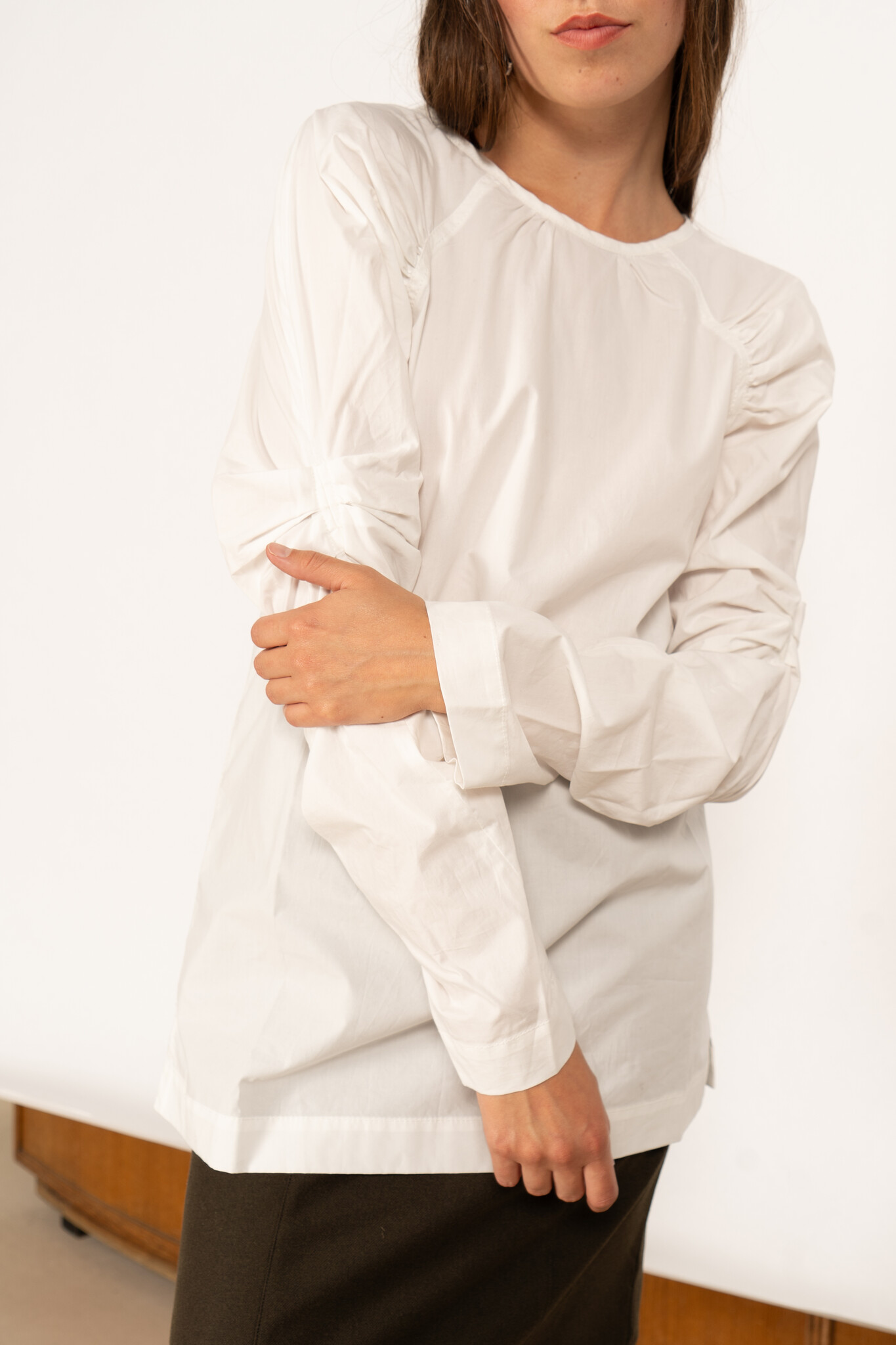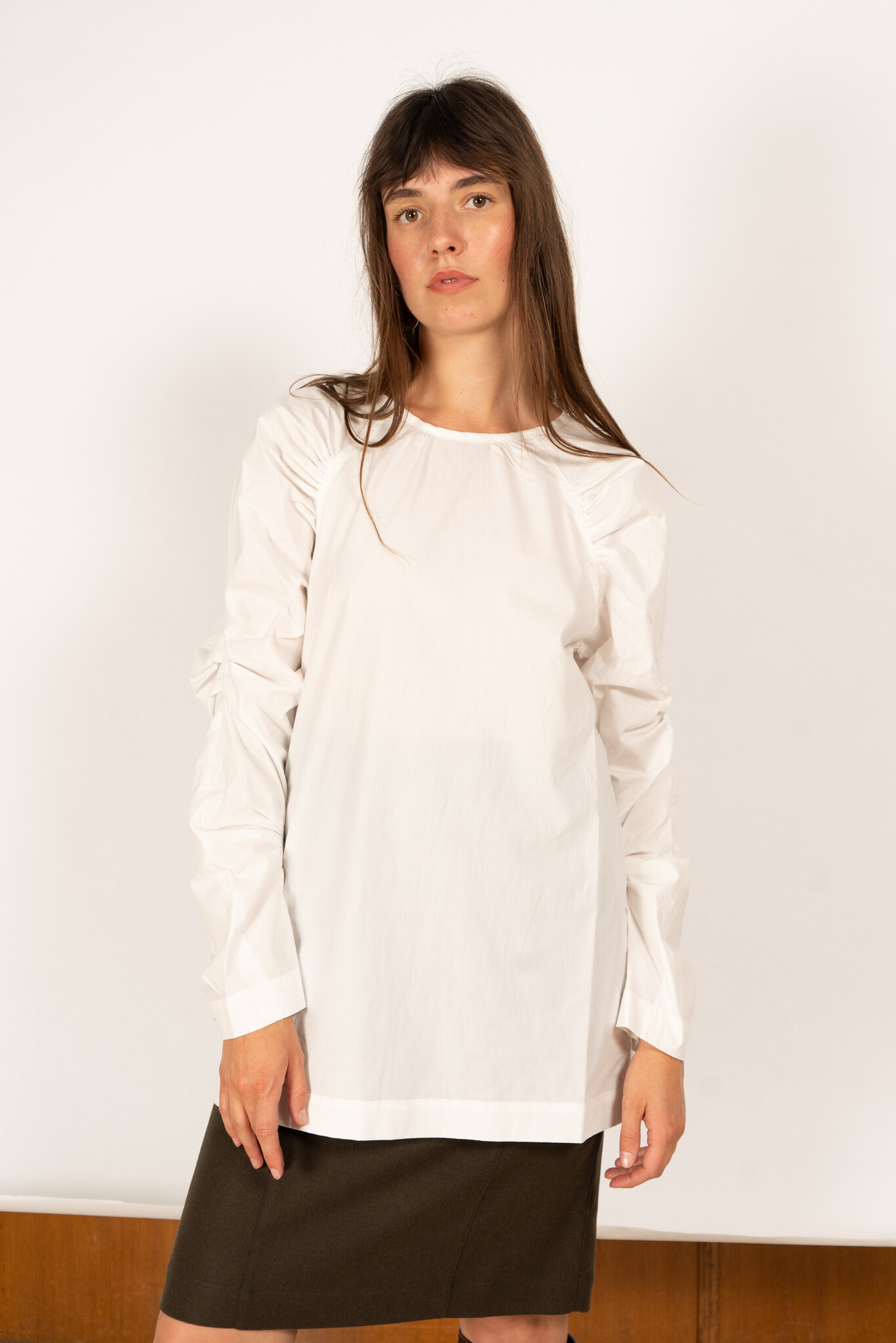 Gathered raglan sleeve blouse in 100% cotton poplin by La Fetiche.