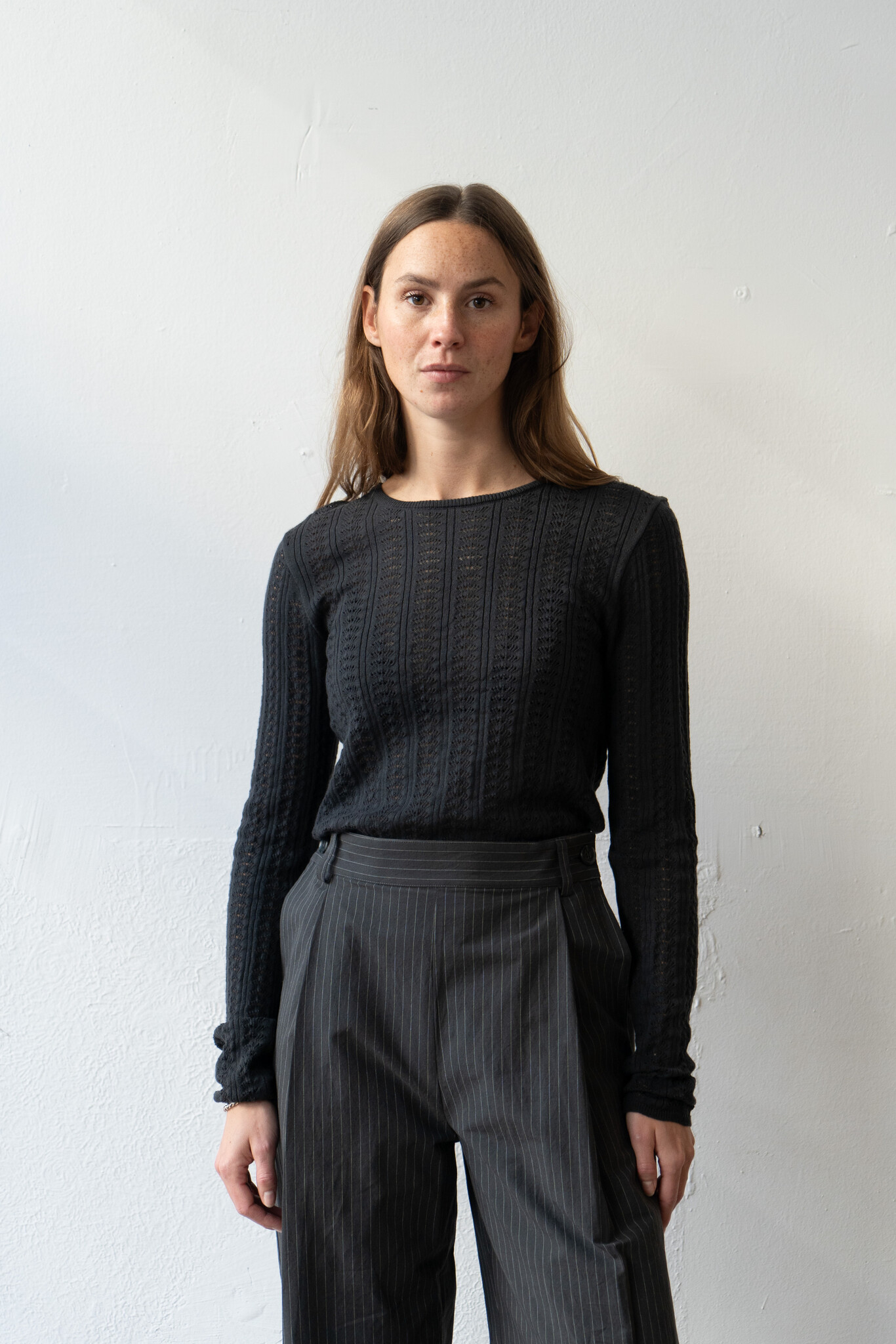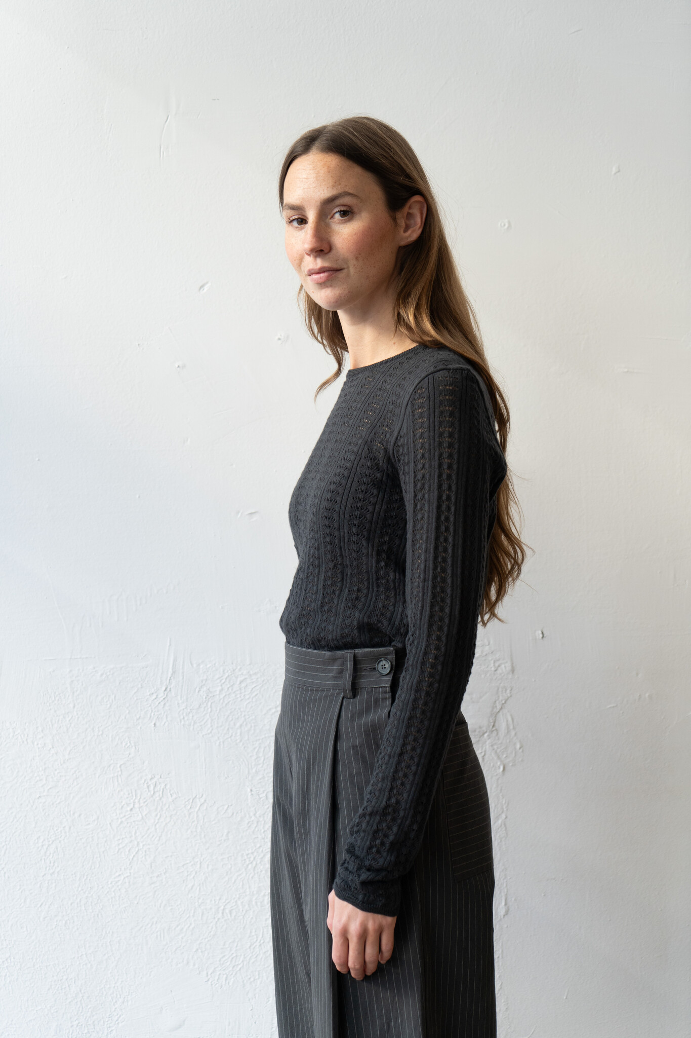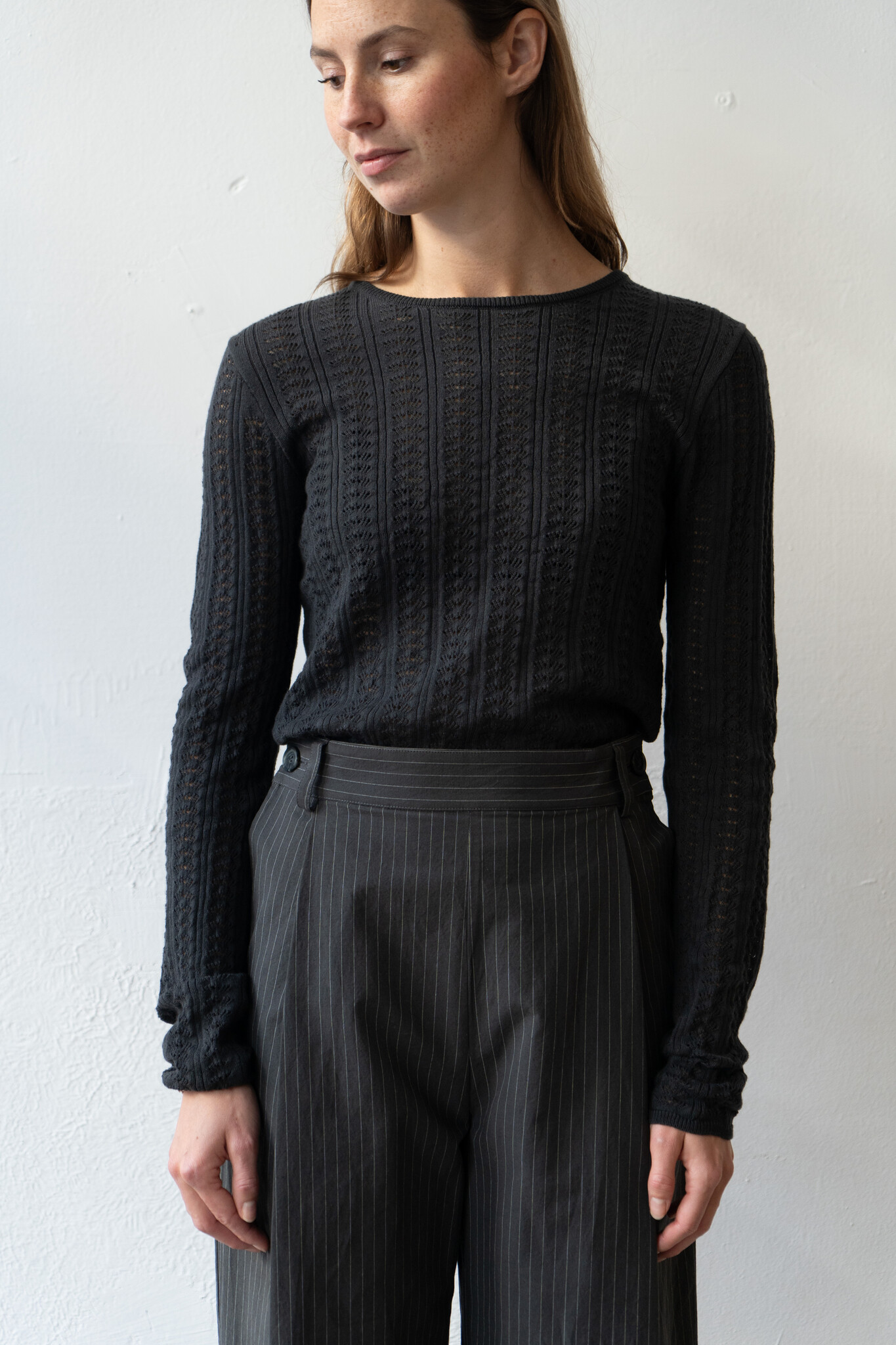 Cawley Pointelle LS Womens Tshirt Onyx