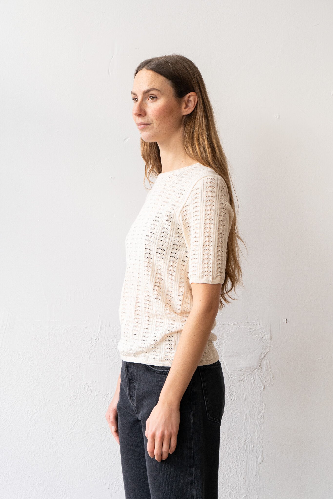 Cawley Pointelle SS Womens Tshirt Chalk