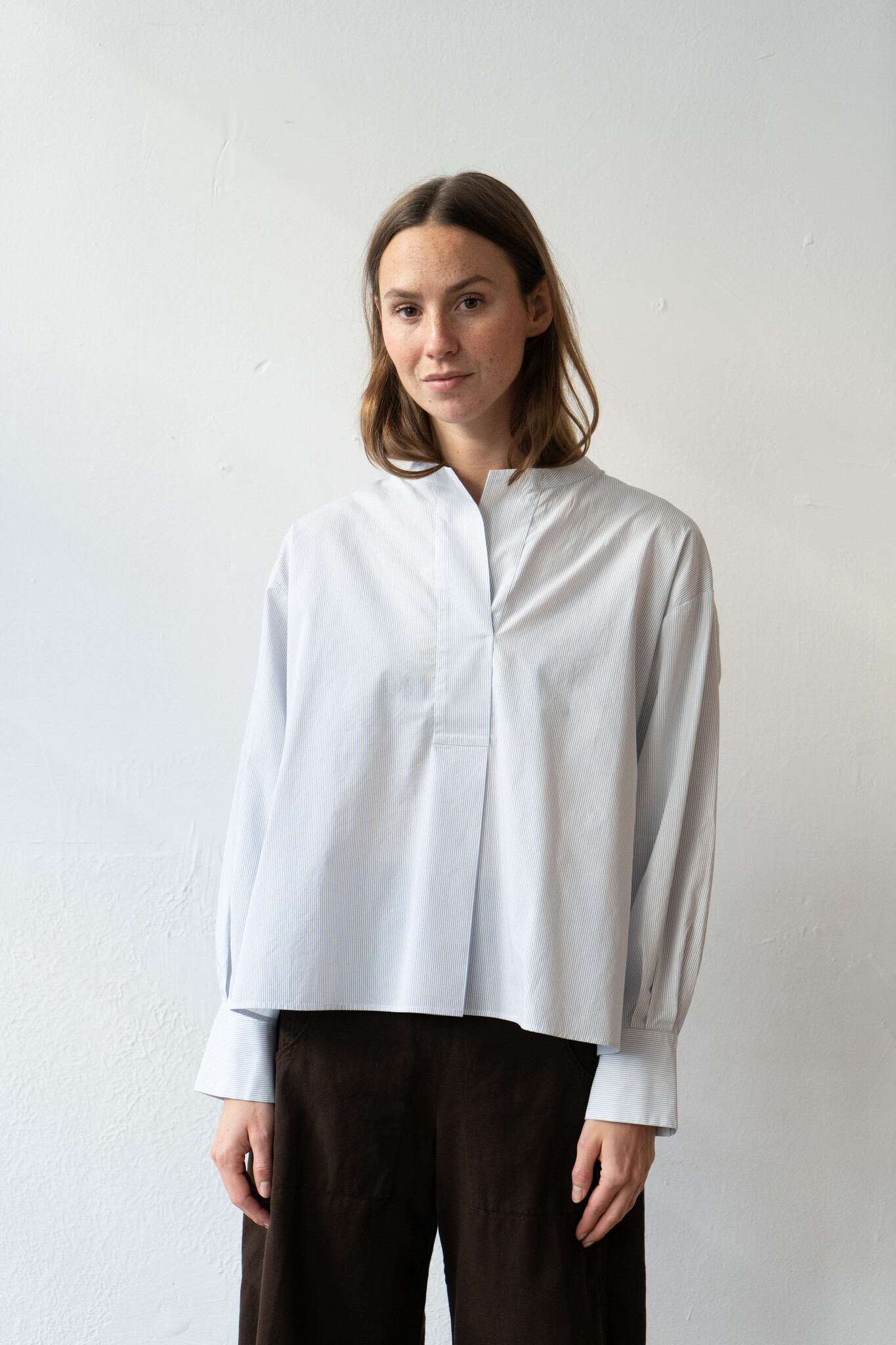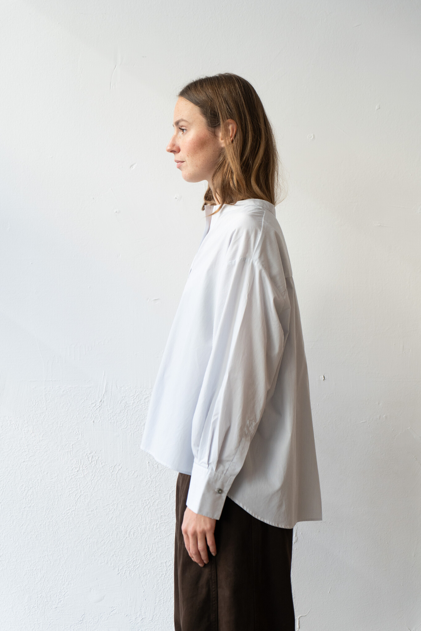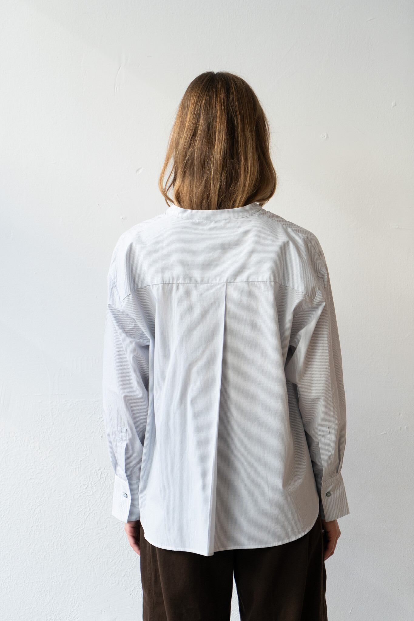 Pomandère Poplin Fine Stripe Shirt Blue White
