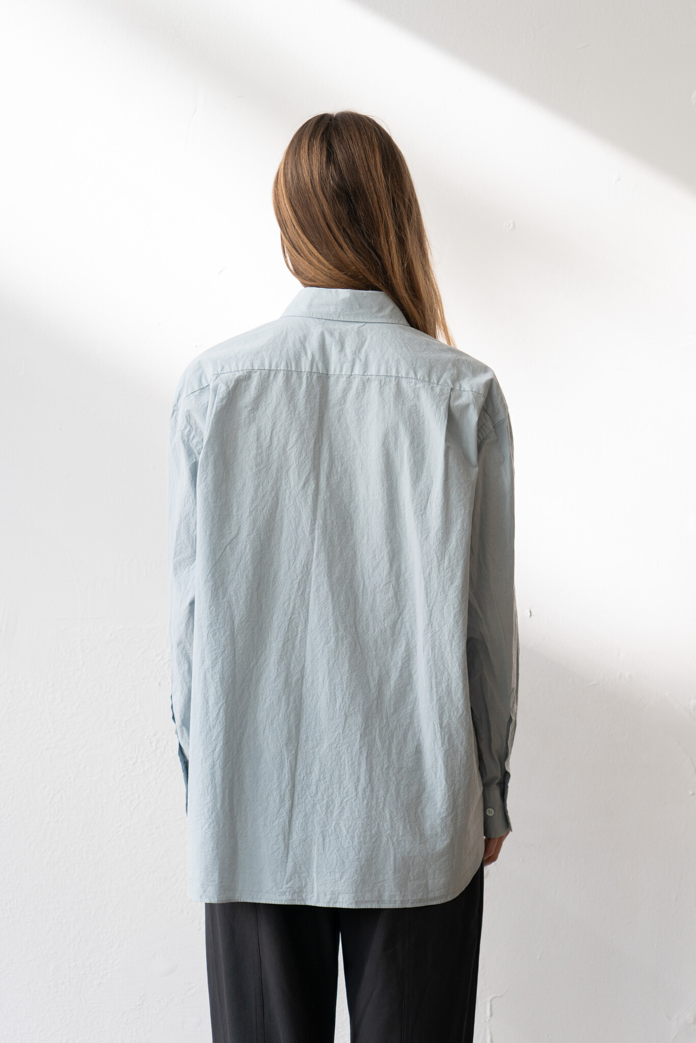 Yoko Sakamoto regular collar shirt sky blue crispy cotton.