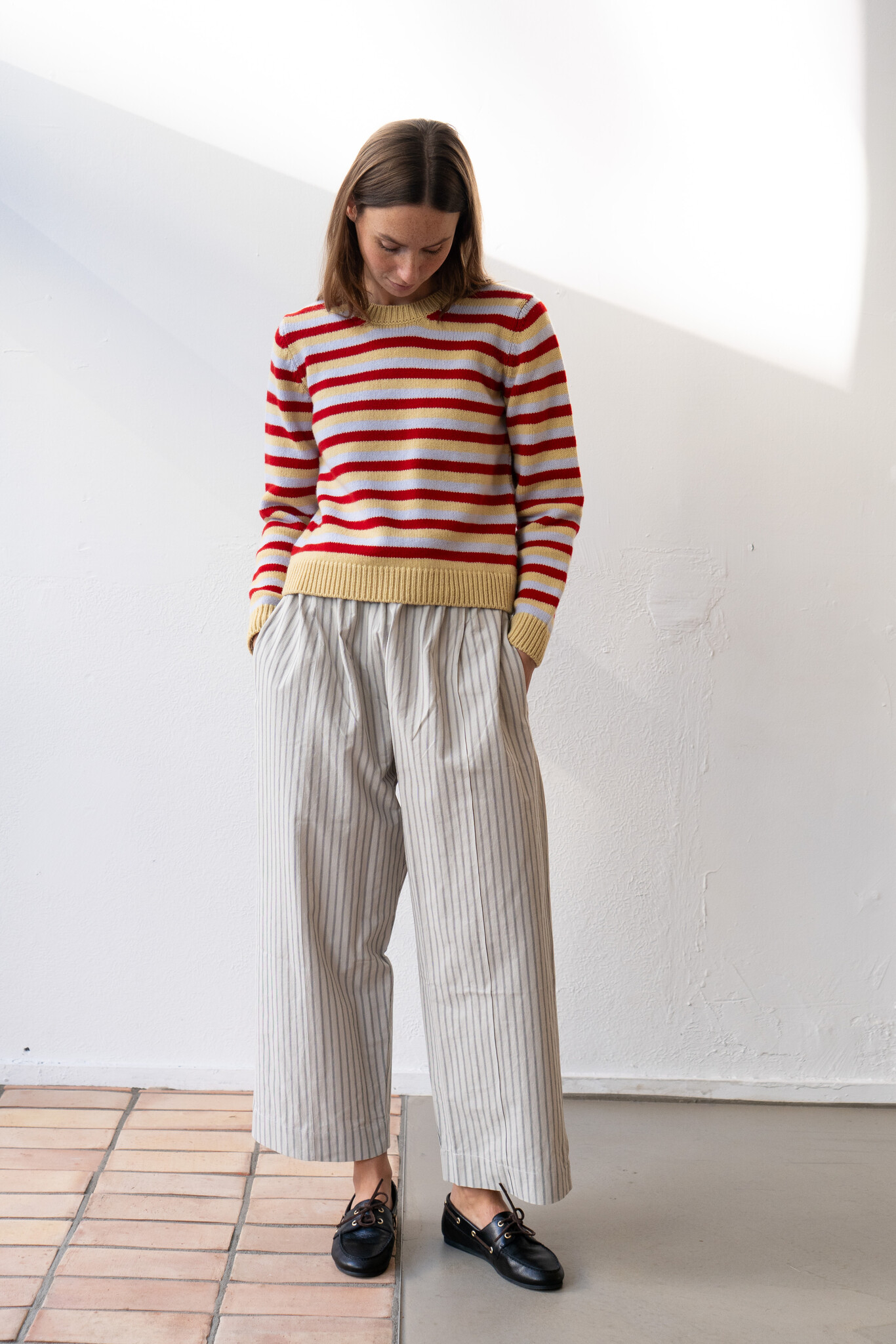 &Daughter Shrunken Crewneck Acacia/Ruby/Chakra Stripe