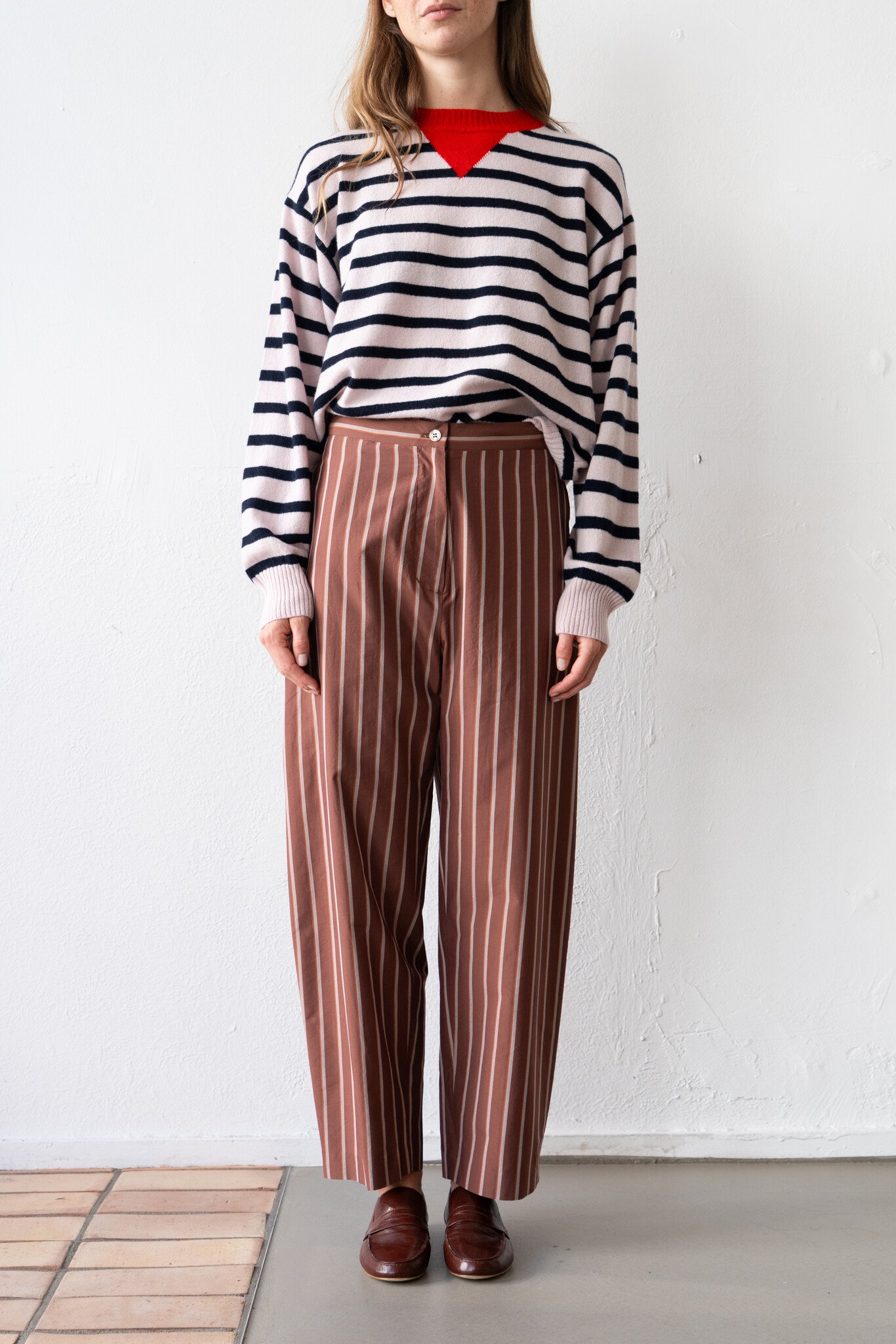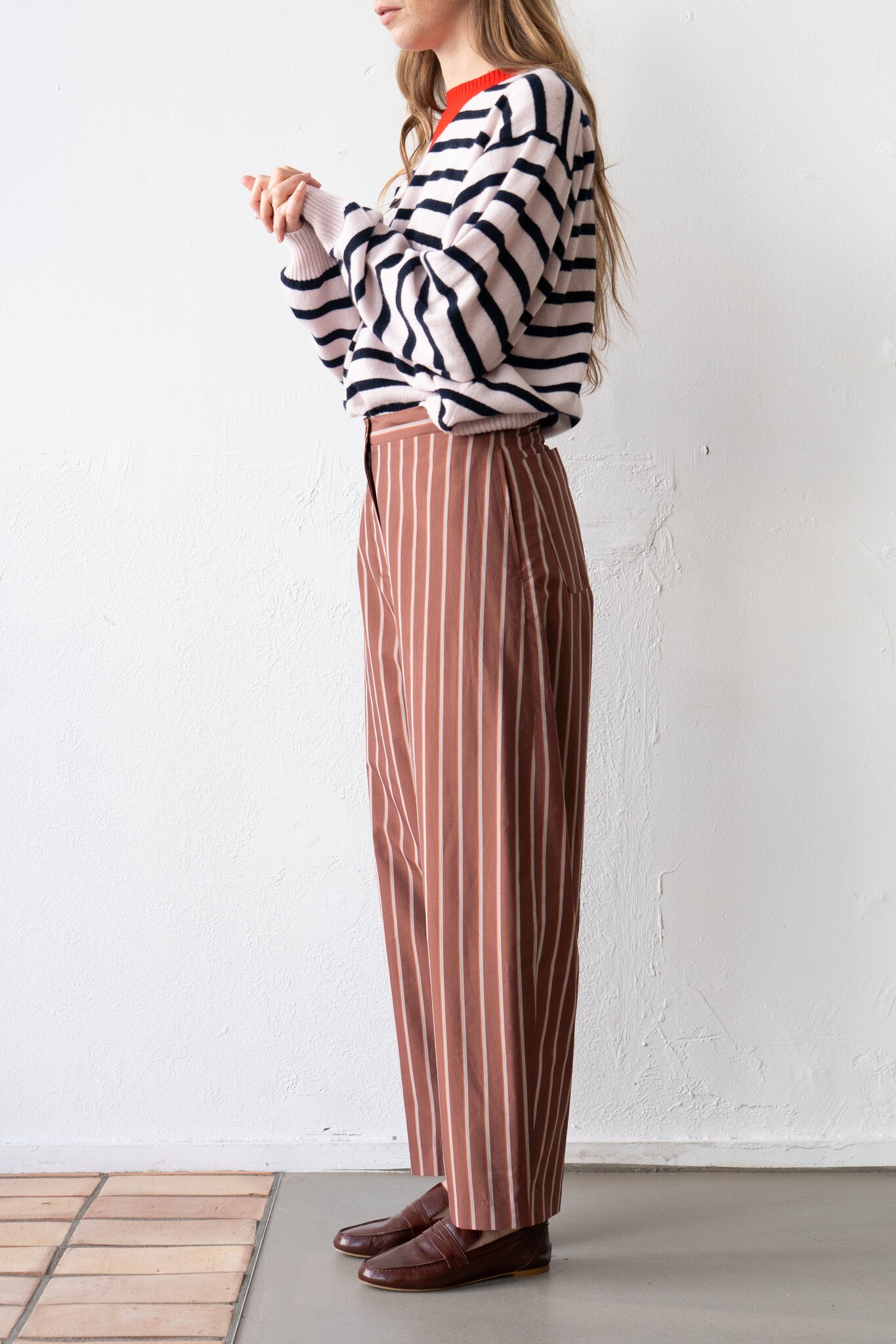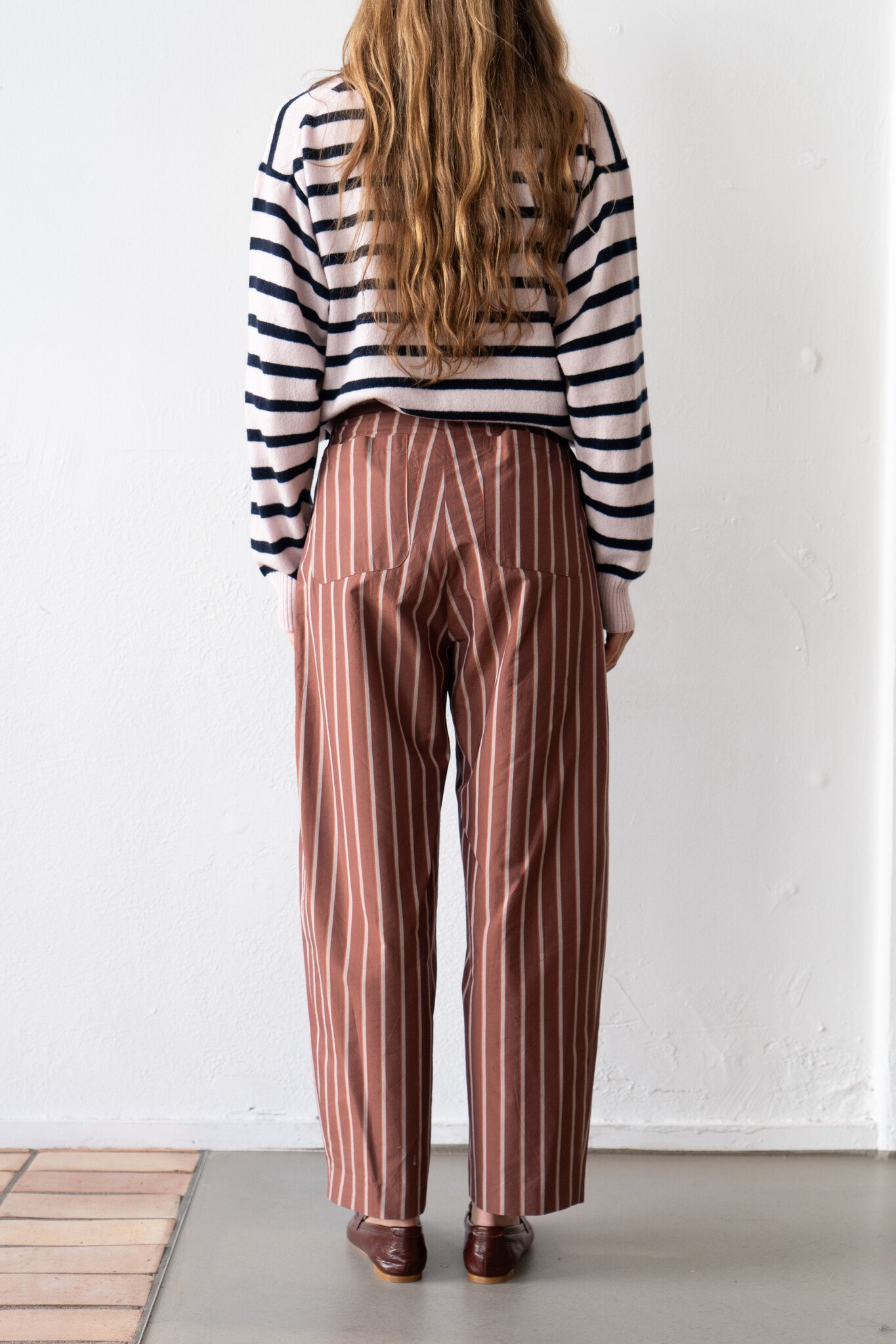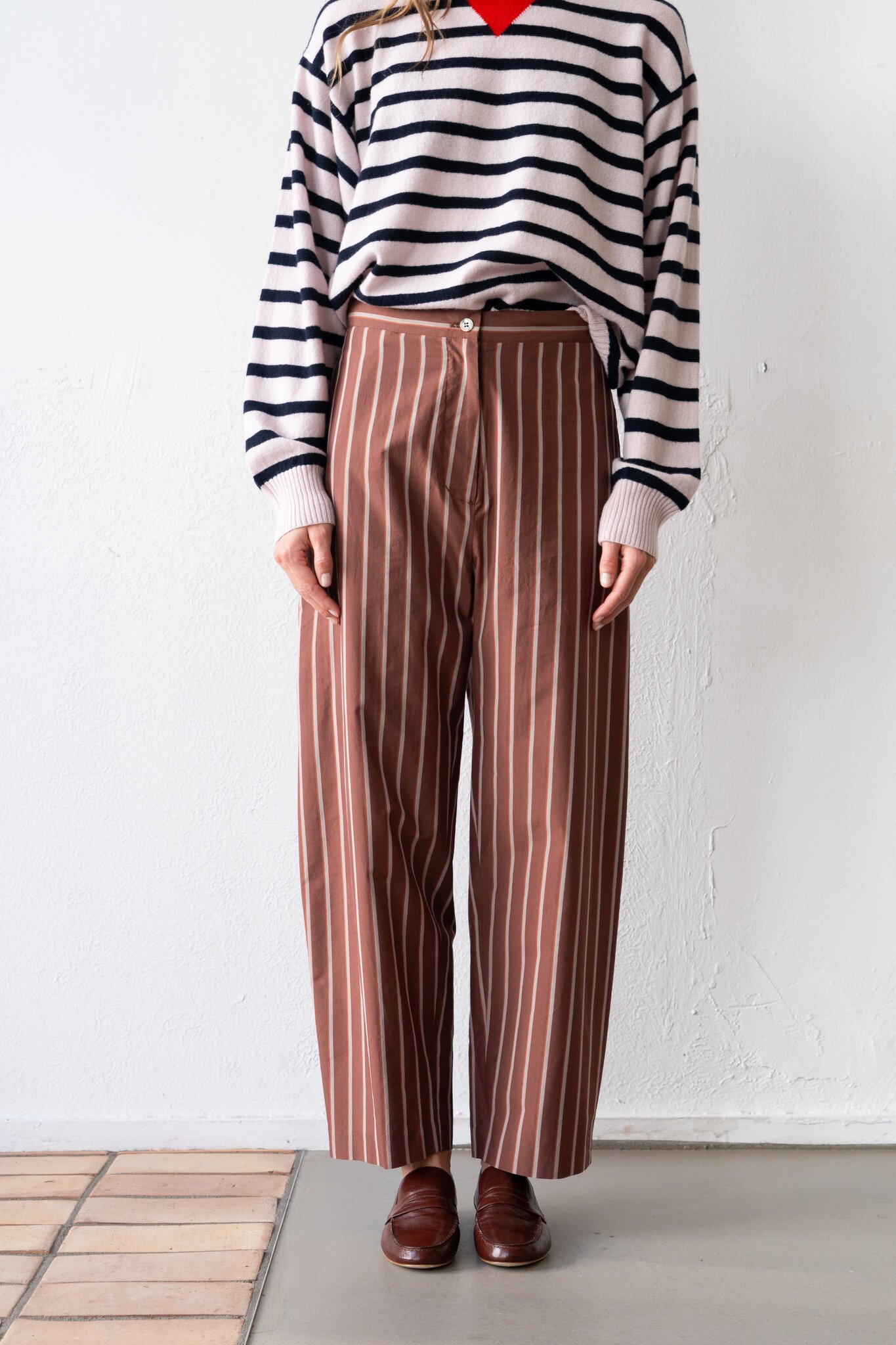 - Silk Cotton Brown Stripe Easy Curve Pants