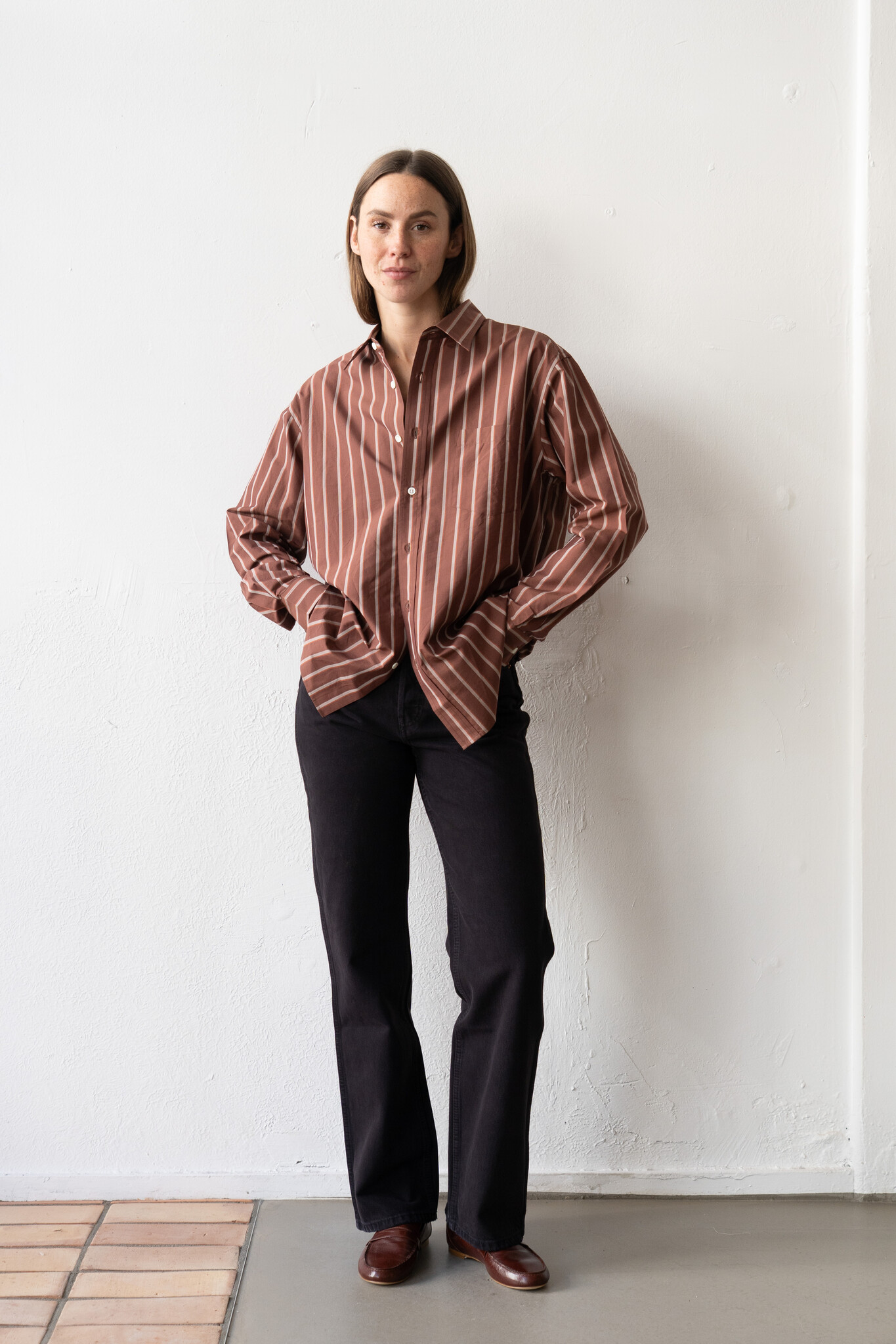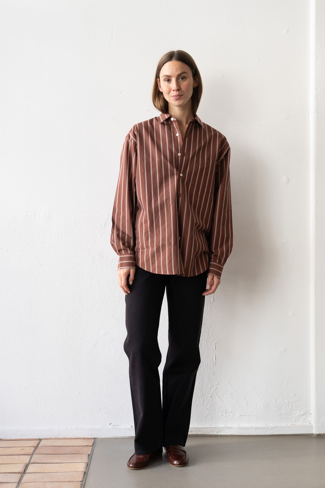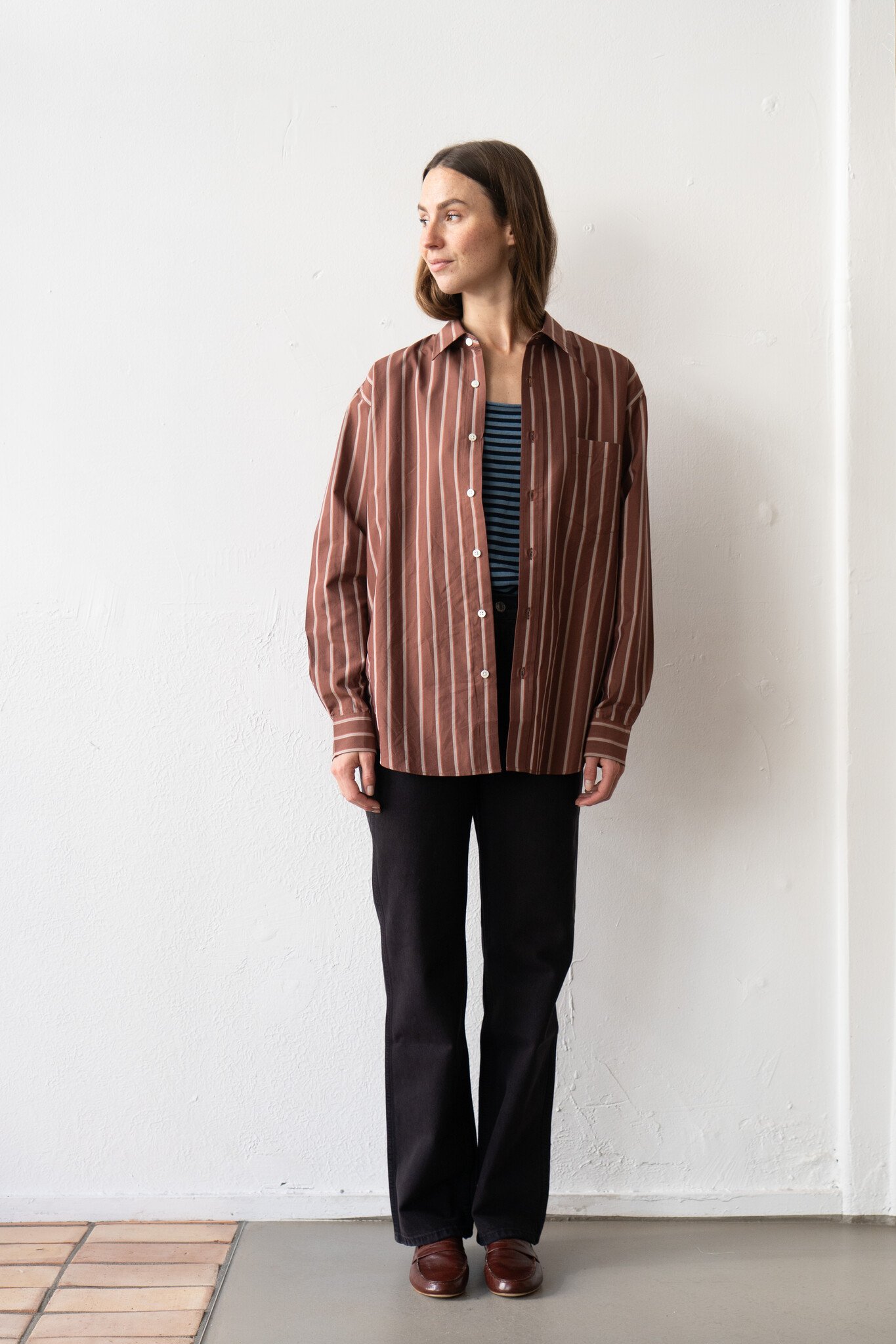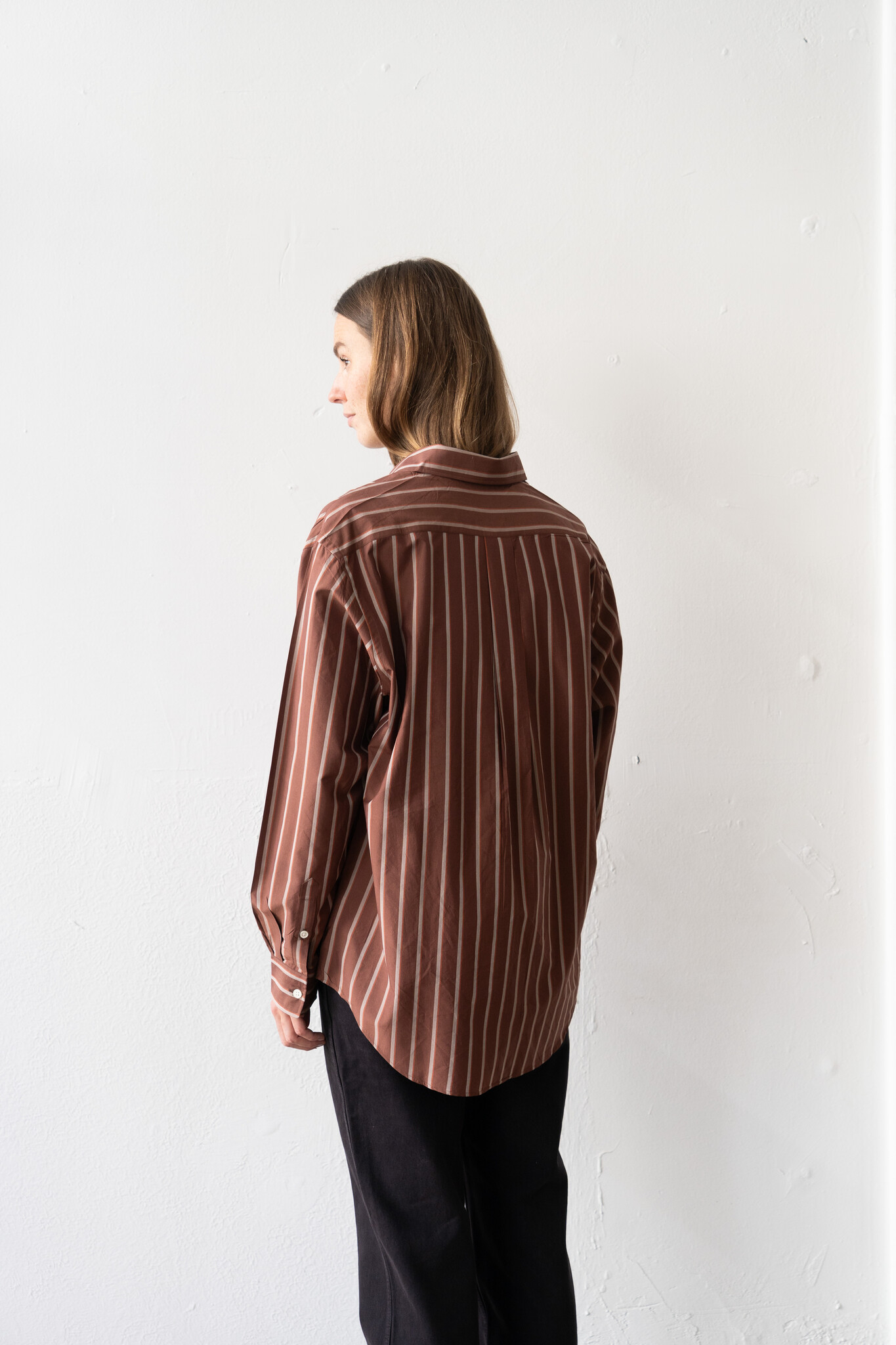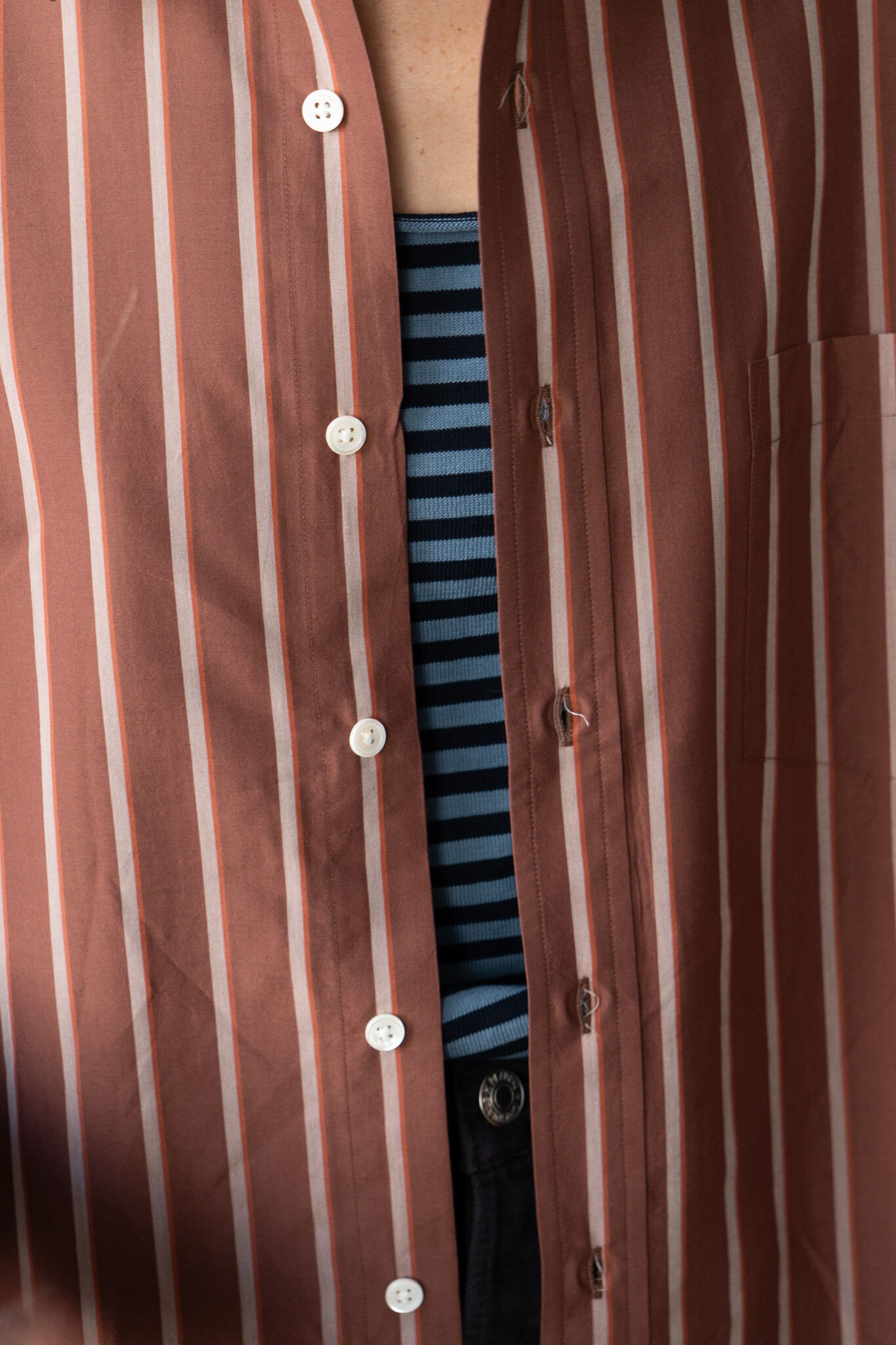 Silk Cotton Stripe Shirt Brown by Ernie Palo.