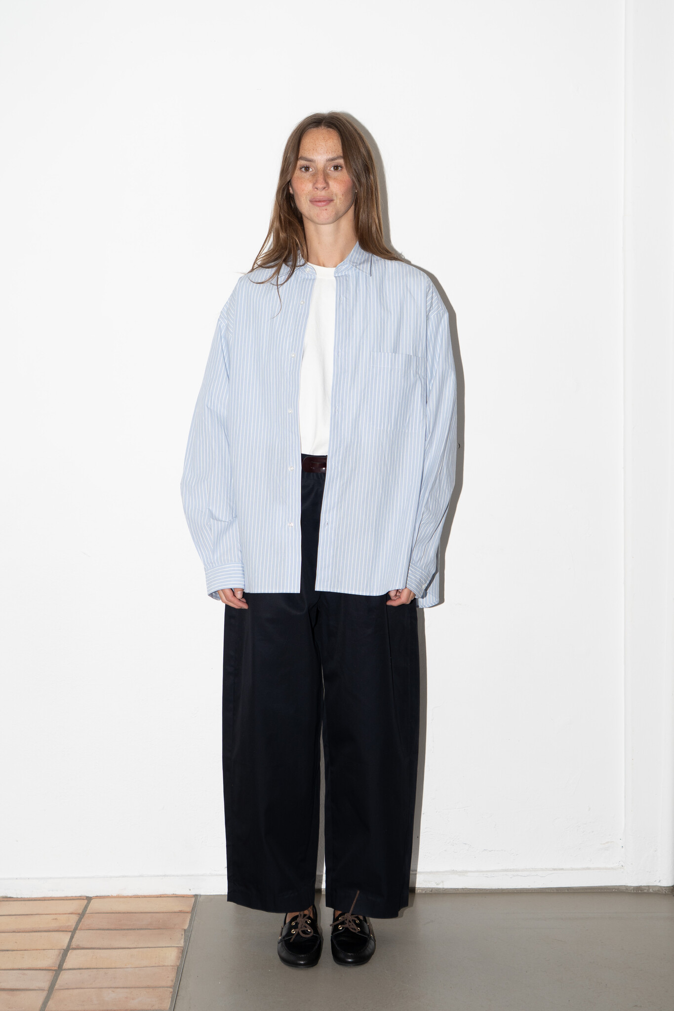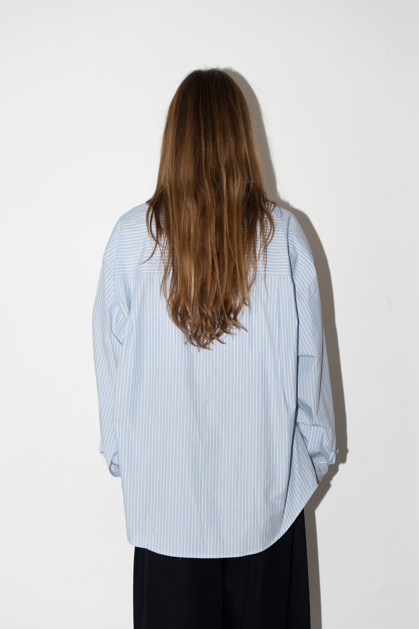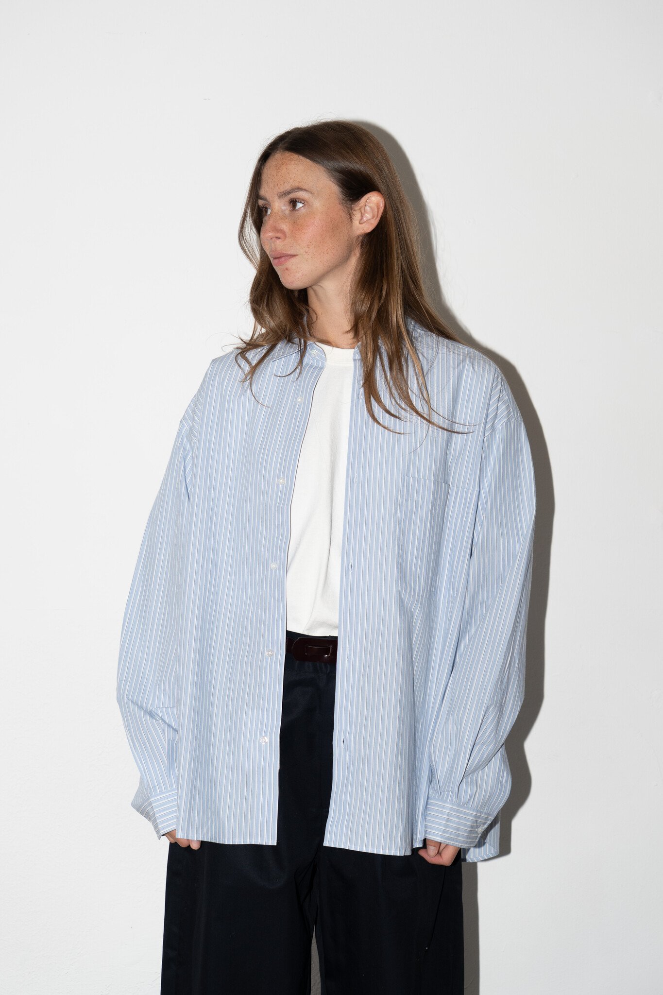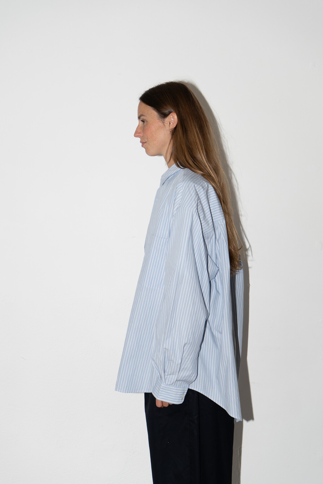 Typewriter cotton shirt blue stripe by de dam foundation.